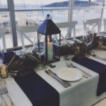 The waterfront marquee is our largest and most popular wedding reception area. Enjoy a functional outdoor marquee setting with festoon lighting and the most spectacular sunsets you will ever see. The marquee includes a terrace area which doubles as a waterfront ceremony space and cocktail deck during the reception.